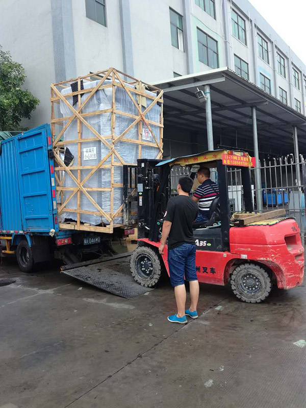 最后的步驟,封裝完成后,我們會用叉車把裝有移動k歌房貨品的木架抬上車,然后貨車進行運輸。點唱機產品訂購熱線:400-030-2780