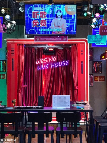 舞臺(tái)版全民K歌房的亮點(diǎn)是一個(gè)復(fù)古式的開放舞臺(tái),所有顧客都可以掃碼登臺(tái)演唱,霓虹燈將現(xiàn)場氣氛渲染得較為濃烈,較高的演唱水平引得臺(tái)下爆滿的觀眾連連拍手叫好。
