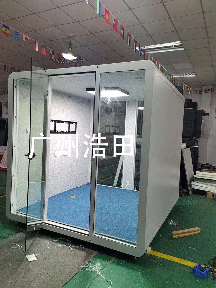 阻燃的聚酯纖維吸音板以及尼龍地毯,使其達到聲學(xué)環(huán)境指標。隔音艙無色差粉末噴涂的表面處理